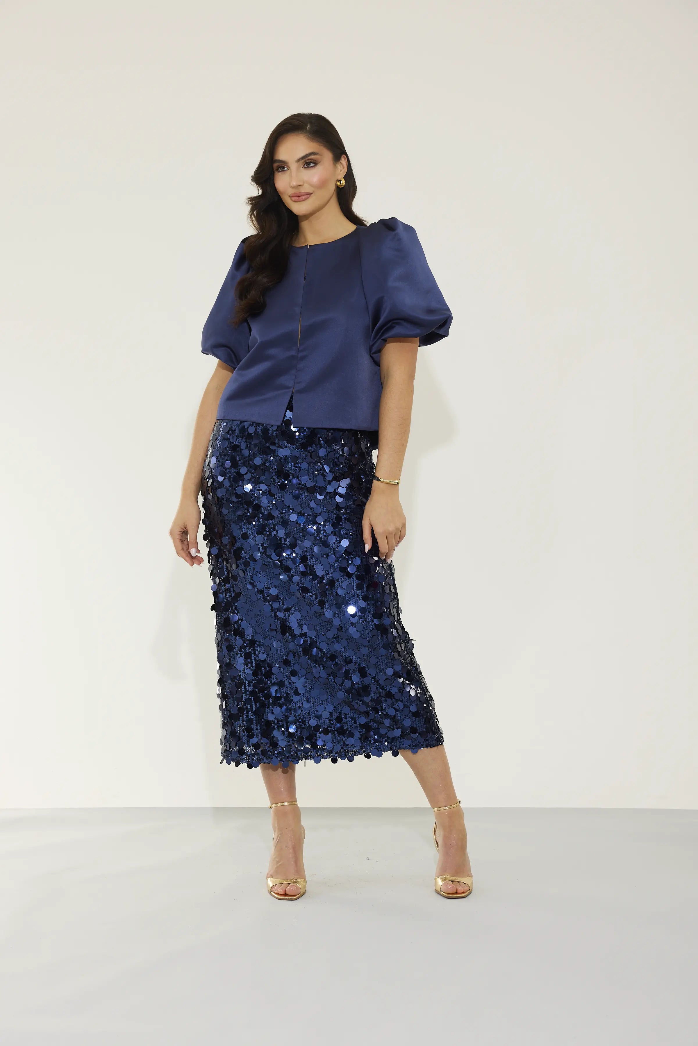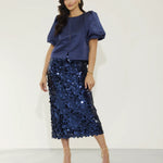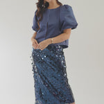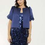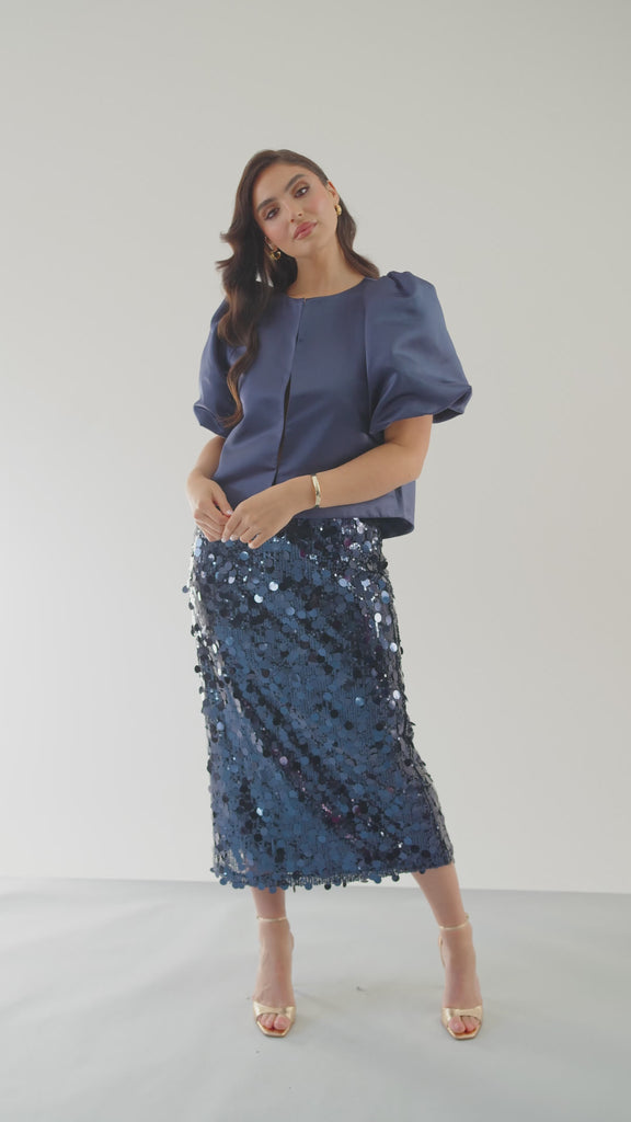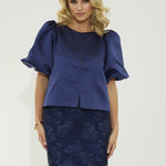 Designed with a wider boat neckline and structured puff sleeves, her slightly extended back hem creates a graceful drape. The hook-and-eye closure gives a seamless finish, while the custom NOMI lining ensures every inch feels refined. The Navy Marlow is a true wardrobe hero; classic, versatile, and designed to make every outfit feel elevated.